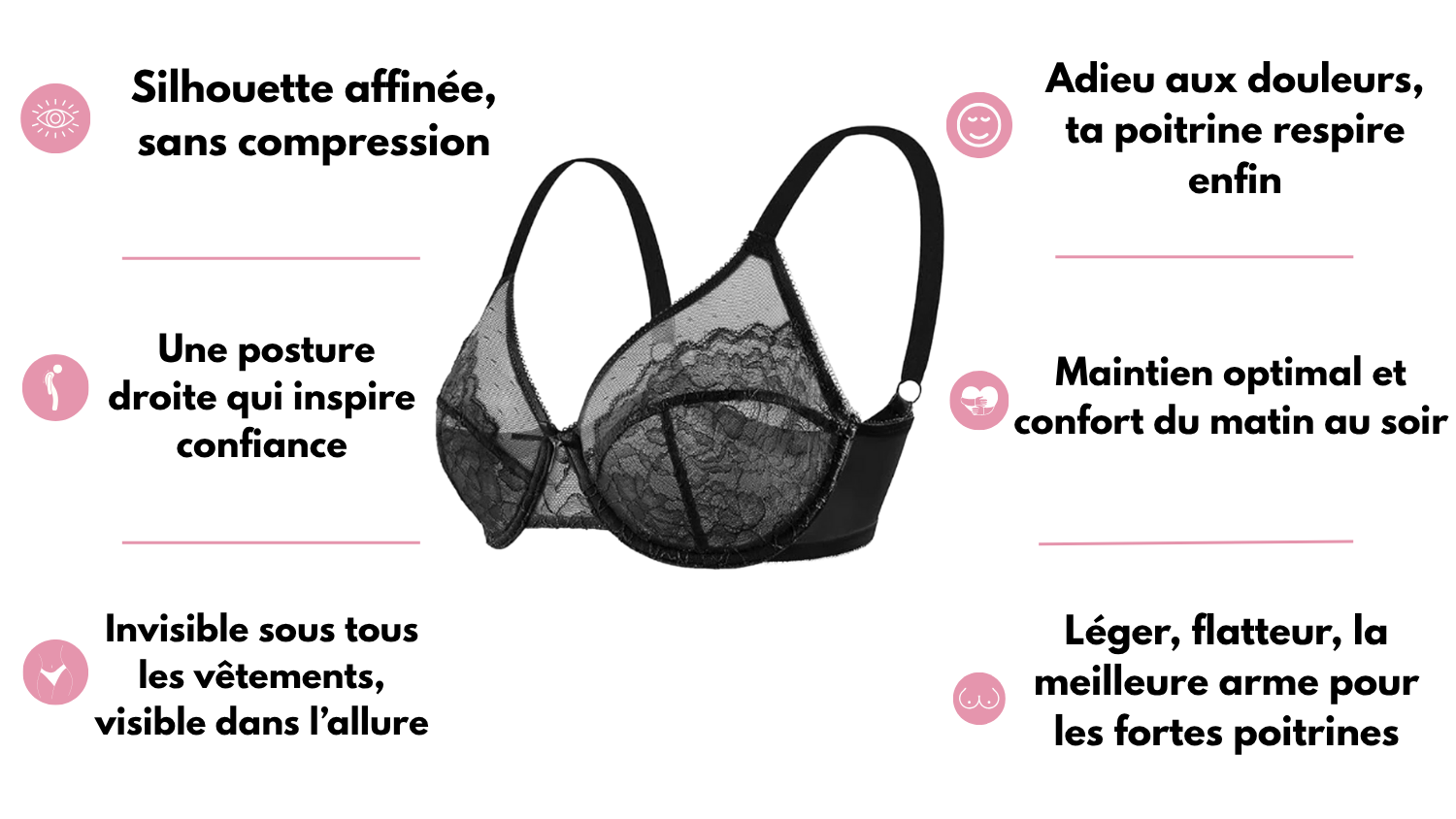 Je ne pensais pas qu’un soutien-gorge pouvait être aussi confortable ! Il maintient parfaitement sans serrer, et ma silhouette paraît vraiment plus lisse sous mes vêtements.